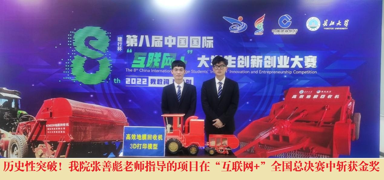 新闻网讯11月10日至13日,由教育部等12个中央部委和重庆市人民政府共同主办的第八届中国国际“互联网+”老员工创新创业大赛全国总决赛在线上举行,经过激烈角逐,本届“互联网+”大赛高教主赛道共产生168个金奖,我省共入围该赛道高校13所共29个项目,最终获得该赛道金奖12个,其中公司张善彪老师指导的《高效地膜回收机——专注新疆棉田“白色污染”治理》项目获的金奖,实现了公司“互联网+”大赛金奖的重大历史性突破,树立了新标杆,取得了创新创业教育里程碑式的新成绩。在全国总决赛线上答辩环节,廖培霖、杜帅龙两位参赛成员沉着冷静,表现优异,充分展现出长大学子的精神风貌和创新创业能力。