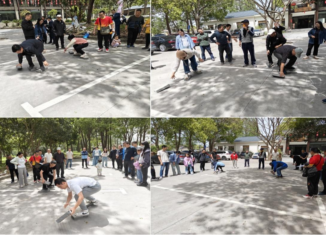 滚铁环项目瞬间点燃了大家的童年记忆。每队4人接力,在20米长的赛道上推动铁环竞速。铁环时而听话地滚动,时而调皮地歪倒,选手们手忙脚乱的样子引发了阵阵欢笑。