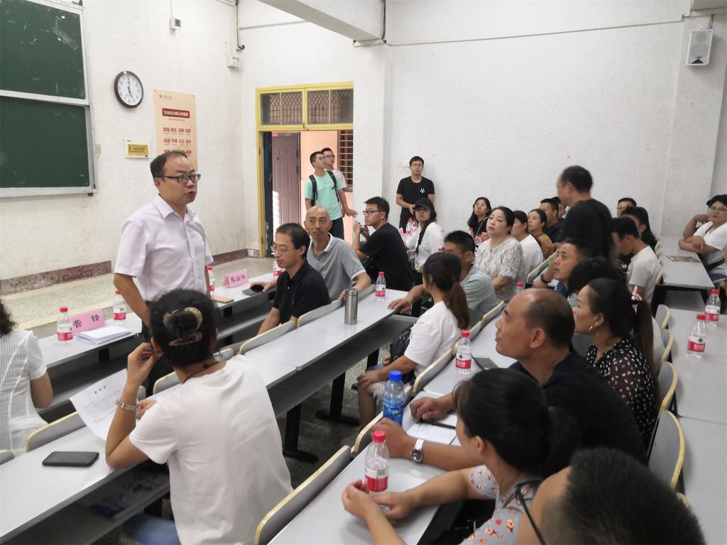 9月4日下午16:00,“我与机械 相识浅秋”新生家长见面会在西校区5教103室成功举行,经理管锋、党委书记王红艳、副经理李美求、吕志鹏、张云华和全体辅导员老师参加活动,并现场回答家长的疑问与问题。