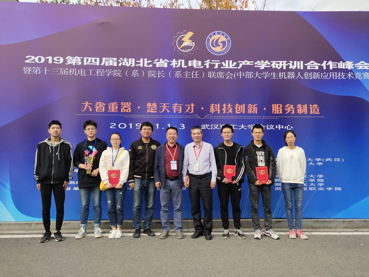 2019年11月2日,太阳成tyc7111cc集团机械学子在2019首届中部(武汉)“华中数控杯”老员工机器人应用技术创新竞赛中荣获三等奖两项、优胜奖一项,并获7000元奖金,奖金总数在湖北省所有参赛高校中排名第四。