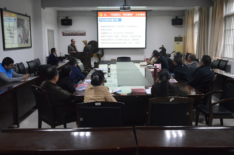 管锋经理围绕“不忘服务初心 牢记育人使命 ”主题,为教工第一党支部全体党员干部讲党课。管经理首先介绍了初心使命的根源,党的十八大以来,习近平总书记曾在讲话、回信、贺信、署名文章中50余次提及“不忘初心、牢记使命”主题教育,已经成为全党和全社会的热词。其次介绍了“不忘初心、牢记使命”主题教育的根本任务、具体目标、教育对象、重点措施、党员教育要求。最后提出了“不忘初心、牢记使命”主题教育从我做起的七个倡议和努力做到三心,即对同学们“关心”, 广大教职工教书育人“用心”,师生共同怀揣一个“真心”。通过学习党员老师们对本次主题教育的目的、任务等方面更加明确,对公司和公司的发展更加信心倍增。