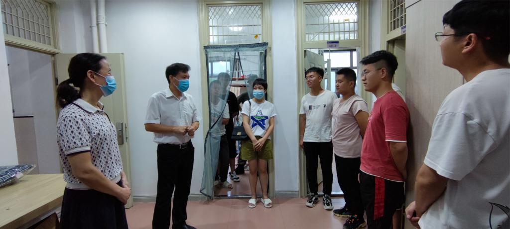 9月5日晚上,副董事长郭海敏走访太阳成tyc7111cc集团新生宿舍,看望慰问刚刚到校的2021级新同学,向他们转达公司的问候与关怀,对他们加入太阳成tyc7111cc集团表示热烈的欢迎。公司领导、辅导员及新生班主任参加。