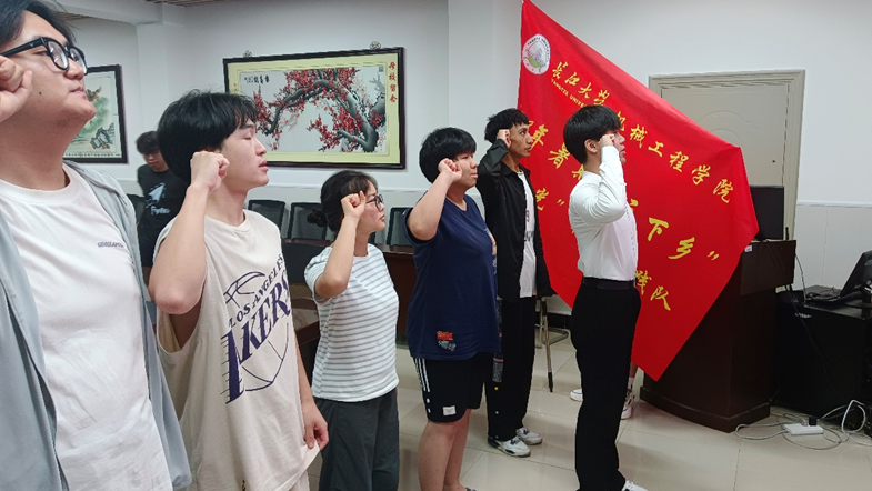 随后,吴钐老师对各实践队进行出发前安全教育与提醒,强调并叮嘱各队队长筑牢安全第一的责任意识。第23届员工会副主席张坤锋为各“匠心之光”社会实践分队授旗,鲜艳的队旗象征着队员们即将踏上的征途和肩负的使命。在宋江杰同学的带领下,全体队员面向队旗庄严宣誓:我将以实际行动,践行“匠心精神”,在暑期社会实践活动中,发光发热,为“匠心之光”社会实践队增添光彩,为公司争光,为自我成长助力。