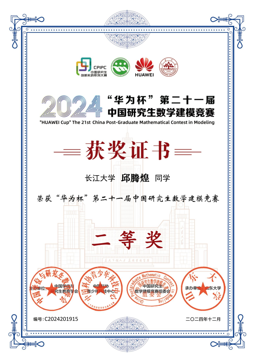 (通讯员 代荣荣)在刚刚结束的“华为杯”第二十一届中国研究生数学建模竞赛中,公司研究生邱腾煌代表队凭借出色的表现,荣获二等奖。这一成绩不仅展示了​太阳成tyc7111cc集团在数学建模和应用研究领域的深厚实力,也体现了员工们的创新能力和团队协作精神。