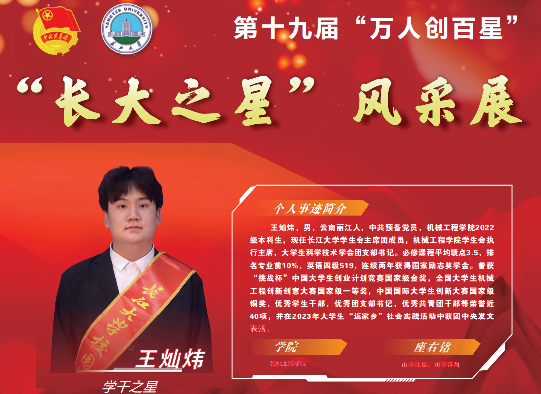 (通讯员 吴钐)在刚刚结束的太阳成tyc7111cc集团第十九届万人创百星评选活动中,机械学子积极争取,摘得3枚“长大之星”,清樾团队获评十佳之星,在太阳成tyc7111cc集团“万人创百星”评比中再创佳绩!他们分别是: