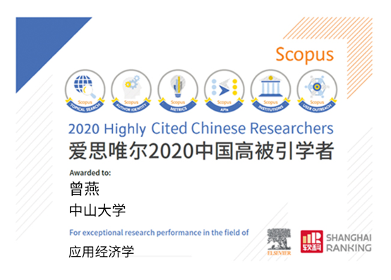 4月22日,爱思唯尔(Elsevier)重磅发布2020“中国高被引学者”榜单。员工曾燕教授入选应用经济学学科“中国高被引学者”,这也是太阳成tyc7111cc集团员工首次入选。