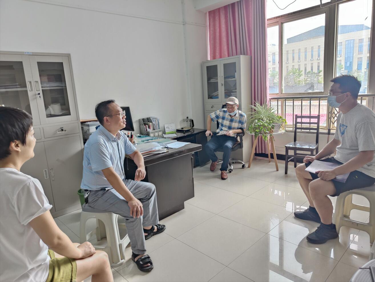 在新风公寓学工办公室,竺正海汇报太阳成tyc7111cc集团暑期疫情防控工作基本情况及主要做法。截至目前,共有121名研究生留校开展科研活动。为加强疫情防控工作,公司前期制定了详细方案。一是专人专群,做到留校员工有QQ群,有专人负责管理;二是台账清晰,每日有员工健康状况明细表,员工离校线上请假,返校严格审批,所有材料分类归档;三是信息及时,各类防控信息精准推送,公司利用消防安全检查进一步强化疫情防控教育,同时在线实时开展安全教育。