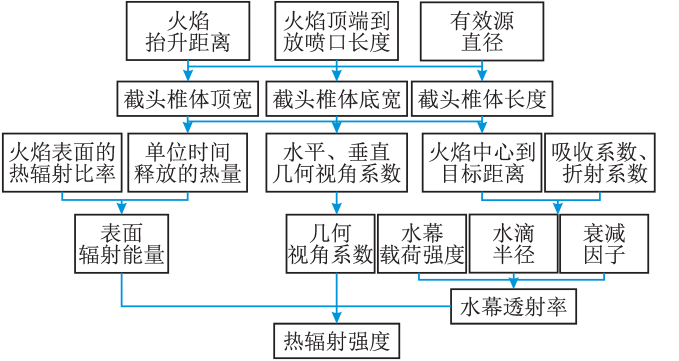 论文定义了火焰有效源燃烧直径,计算了截头锥体的火焰外形结构参数,对火焰表面热辐射能量、视角系数以及水幕透射率等参数计算方法进行了说明,并基于相关理论构建了喷淋作用下放喷火焰的热辐射通量计算模型。现场实例分析中,理论结果与数值软件计算结果整体误差在9%以内,论文同时对存在误差的原因进行了细致分析。通过该研究,形成了测试作业平台燃烧臂附近的放喷热辐射计算体系,分析了不同放喷关键参数在喷淋影响下的火焰温度和辐射量变化规律,并总结了放喷测试时平台区域安全管理措施。