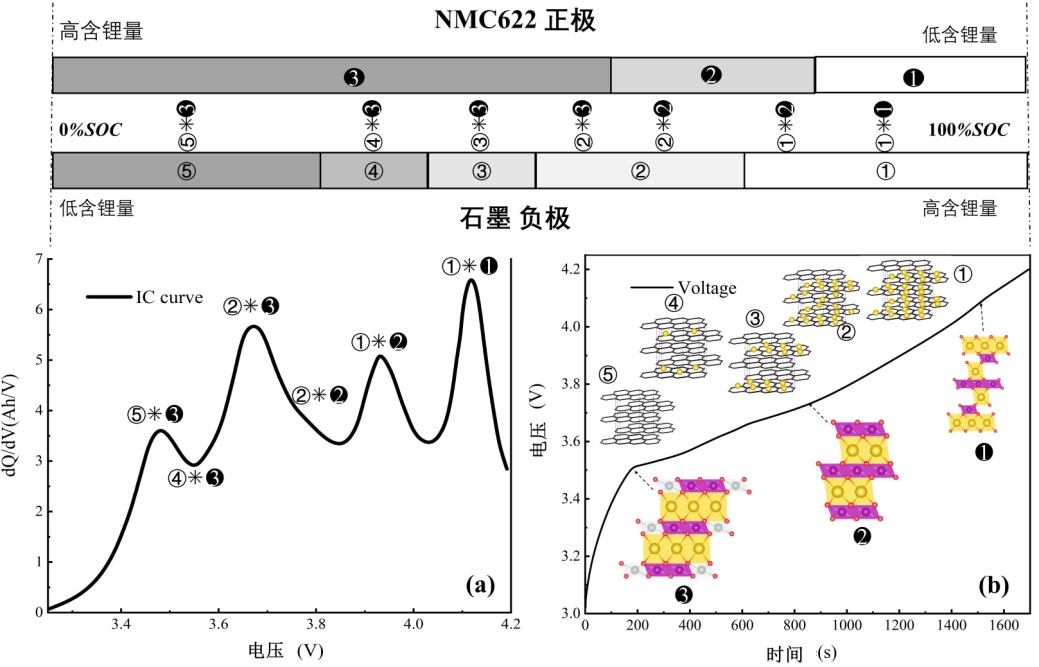 仿真结果说明颗粒插层是主导锂离子电池膨胀行为的主要因素,对膨胀尺度的贡献的达到了92%。通过IC曲线和中子成像技术证明了造成电极材料不同阶段膨胀特征差异的主要原因是内部晶格结构的差异。