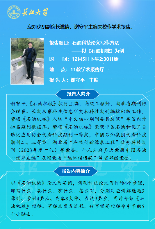 【学术论坛】长江机械讲坛第49讲