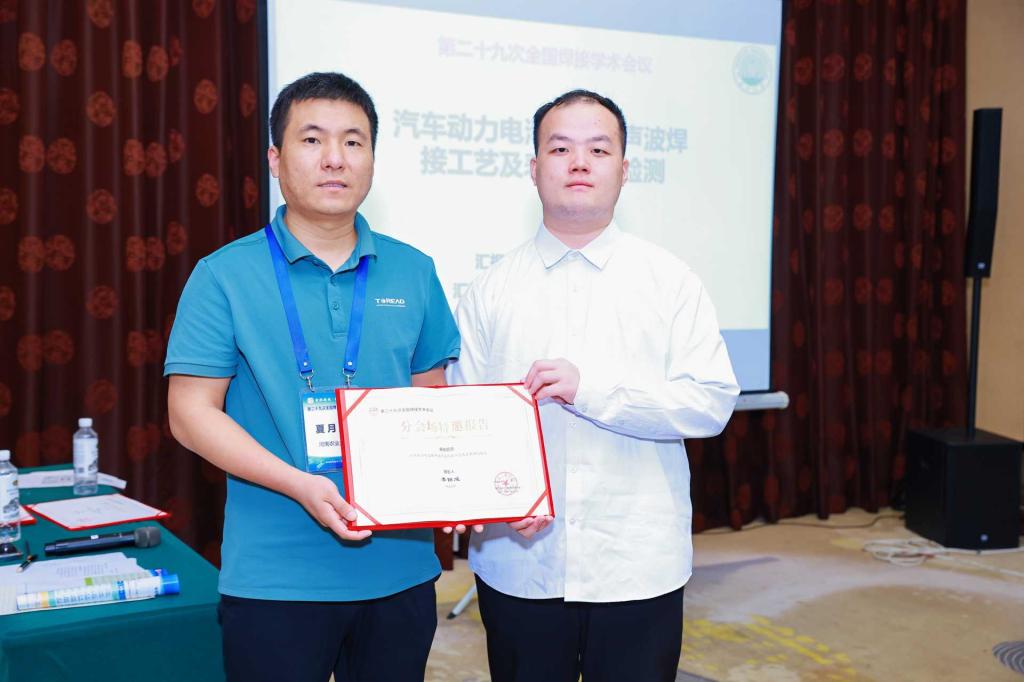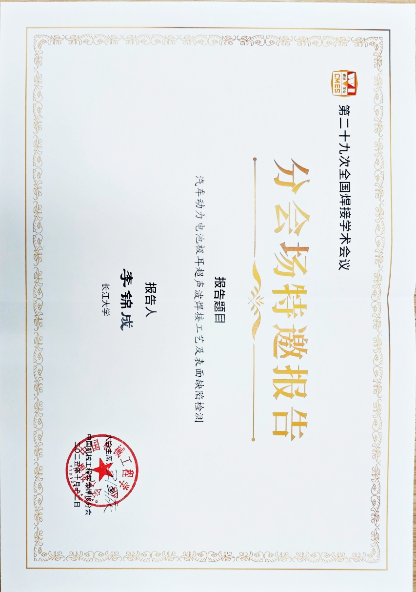 本次会议策划了14个分会场,围绕领域内的前沿科学问题、工程技术难题展开深入研讨,共交流报告近430篇,汇聚了全国焊接科技工作者的创新智慧与最新科研成果。其中,公司2024级硕士研究生李锦成在压力容器、锅炉和管道焊接分会场作题为“汽车动力电池极耳超声波焊接工艺及表面缺陷监测”的特邀报告,与在场专家就动力电池焊接技术、机器视觉及焊接裂纹检测算法进行了深入交流