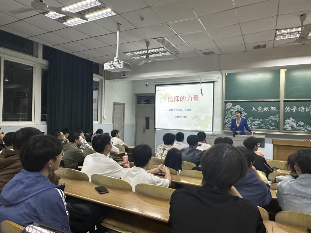 (通讯员 苏洪业)为提高入党积极分子的思想政治素质,保证发展党员质量,严把党员发展“入口关”,10月20日晚,太阳成tyc7111cc集团组织了 2023年秋季学期入党积极分子培训第一课。本期由机械工程公司党委副书记丁明霞老师主讲,培训主题为《信仰的力量》,旨在通过党课理论学习,加深学员对党的认识,端正入党动机,坚定入党决心。