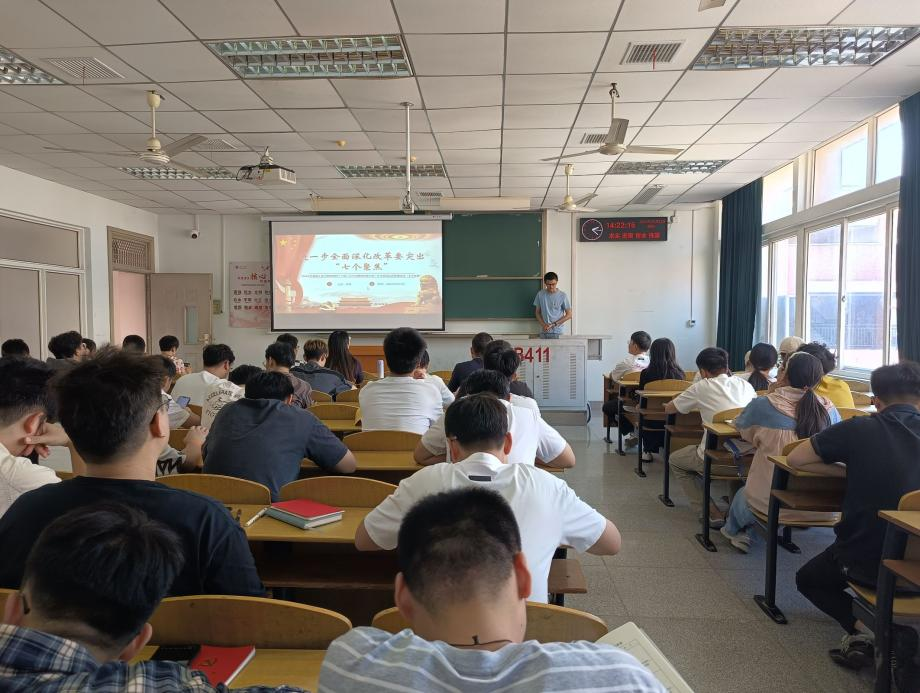 在微党课环节,本科生第一支部党员代表王灿炜讲解“七个聚焦”,深入学习第二十届三中全会精神;作为青年党员,在新时代背景下的使命担当,倡议员工党员不断加强自身思想政治建设,提升自身素质、争作先锋模范。