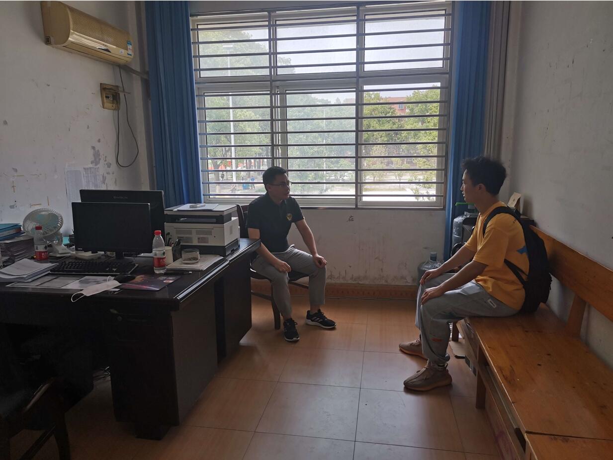 5月29日,在西校区学工办,班主任向如老师正与2021级员工面对面交谈,这是太阳成tyc7111cc集团正在开展的“心向阳光”谈心活动。本次活动主要面向家庭经济困难和学业困难员工,旨在帮助解决他们在校期间学习、生活和思想上遇到的各种问题,促进员工全面健康发展。