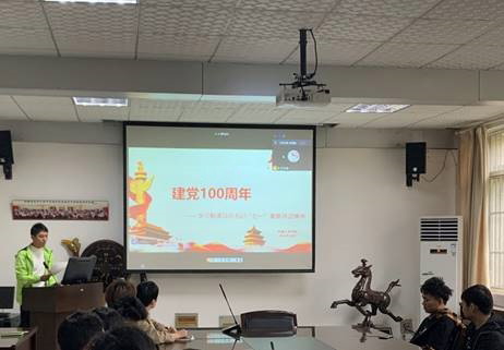 学习采取四位研究生党员进行理论宣讲的方式进行。张佳豪从“七一”讲话意义、四个“伟大成就”以及以史为鉴、开创未来三个方面带领全体研究生学习了习近平总书记在庆祝中国共产党成立100周年大会上的讲话精神;高志伟的分享让大家明白了党史中孕育的伟大精神谱系是百年大党风华正茂的基因密码、是承载中华民族时代精神的实践表达、是引领伟大事业蓬勃发展的不竭动力;周兰向我们解读了《关于全面加强新时代大中小学劳动教育的意见》,让同学们进一步理解了党的教育方针带给我们的变化;最后张鹏宇从三个方面讲述了党风廉政建设的重要意义,带领同学们学习了监察法的相关知识,让大家受益匪浅。
