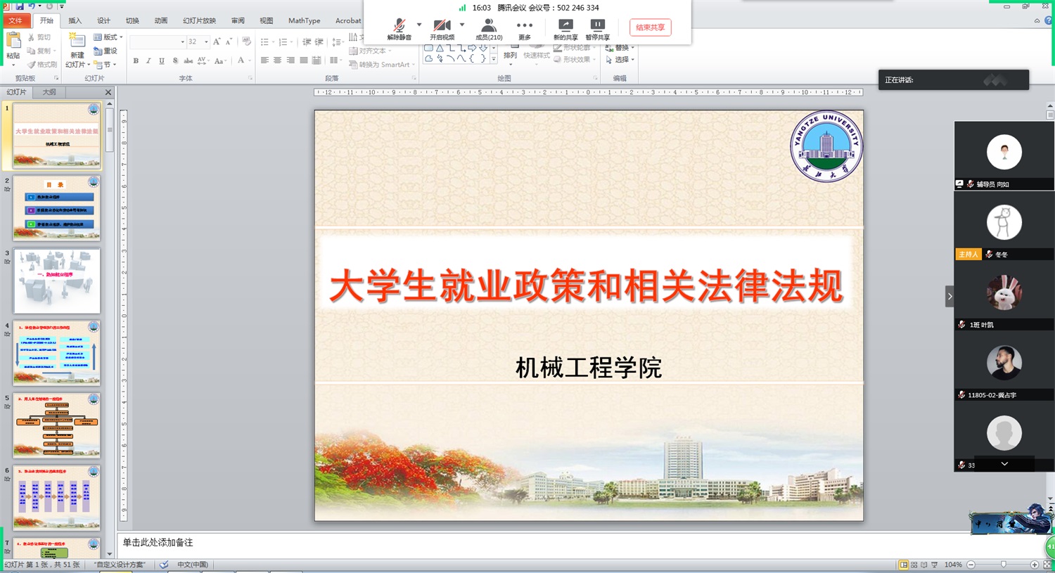 4月9日,太阳成tyc7111cc集团利用腾讯会议开展就业指导,通过政策宣讲和解读,促使毕业生熟悉国家就业政策和公司就业管理规定。讲座吸引了近300名员工参加,活动由就业专干刘冬冬老师主持。