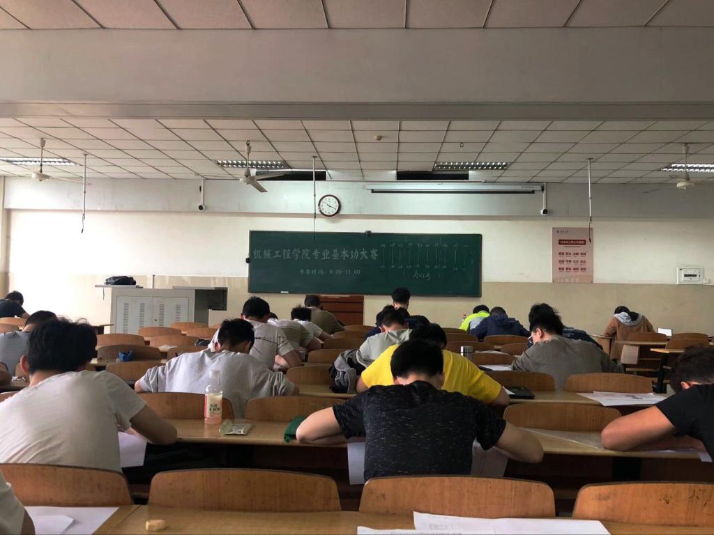 上午9时整,比赛正式开始。拿到试卷后,同学们都埋头构思,勾画图纸,现场只听得见同学们沙沙的画图声。此次比赛试题以基础知识为主,考试内容大部分是机械画图,如“根据主俯视图,画出左视图和斜二视图”。但除去基础题外,部分题目也具有一定的挑战性,需要参赛者们有着较强的机械制图能力,让同学们在锻炼画图能力的同时,也能发挥自己的主观能动性,展露出自己独特的实践能力。