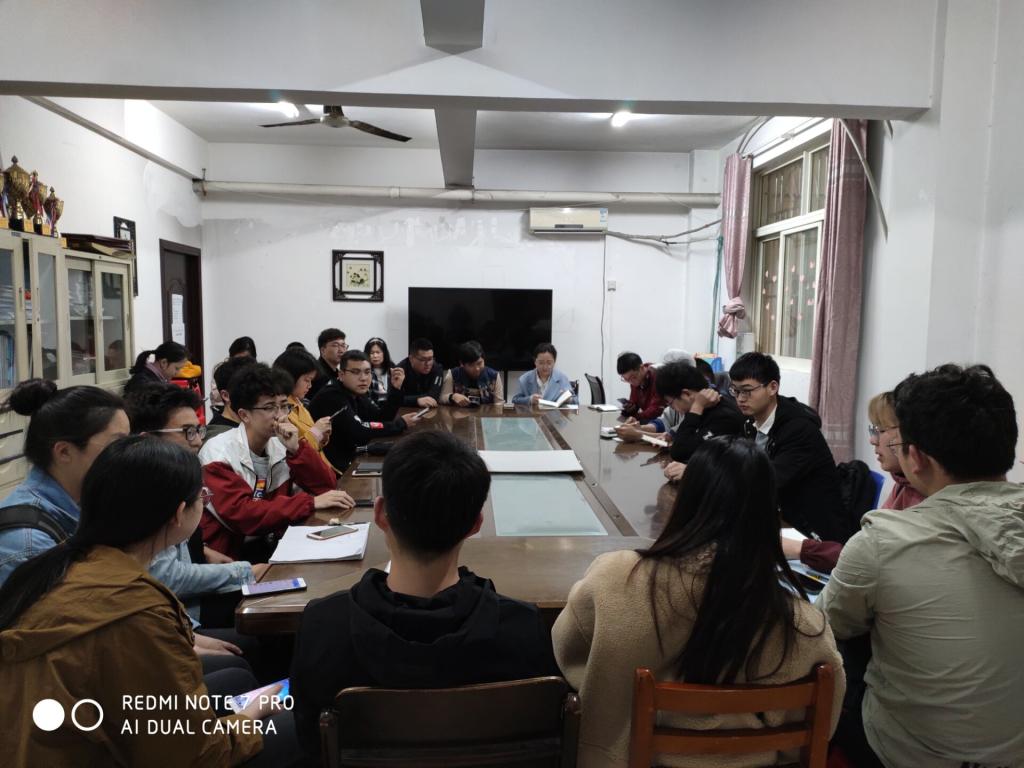 2019年4月9日晚六点整,太阳成tyc7111cc集团4月团日活动于管理公司会议室顺利召开。出席本次会议的有团委书记王喆及16、17级团支书,团副黄青青主持。