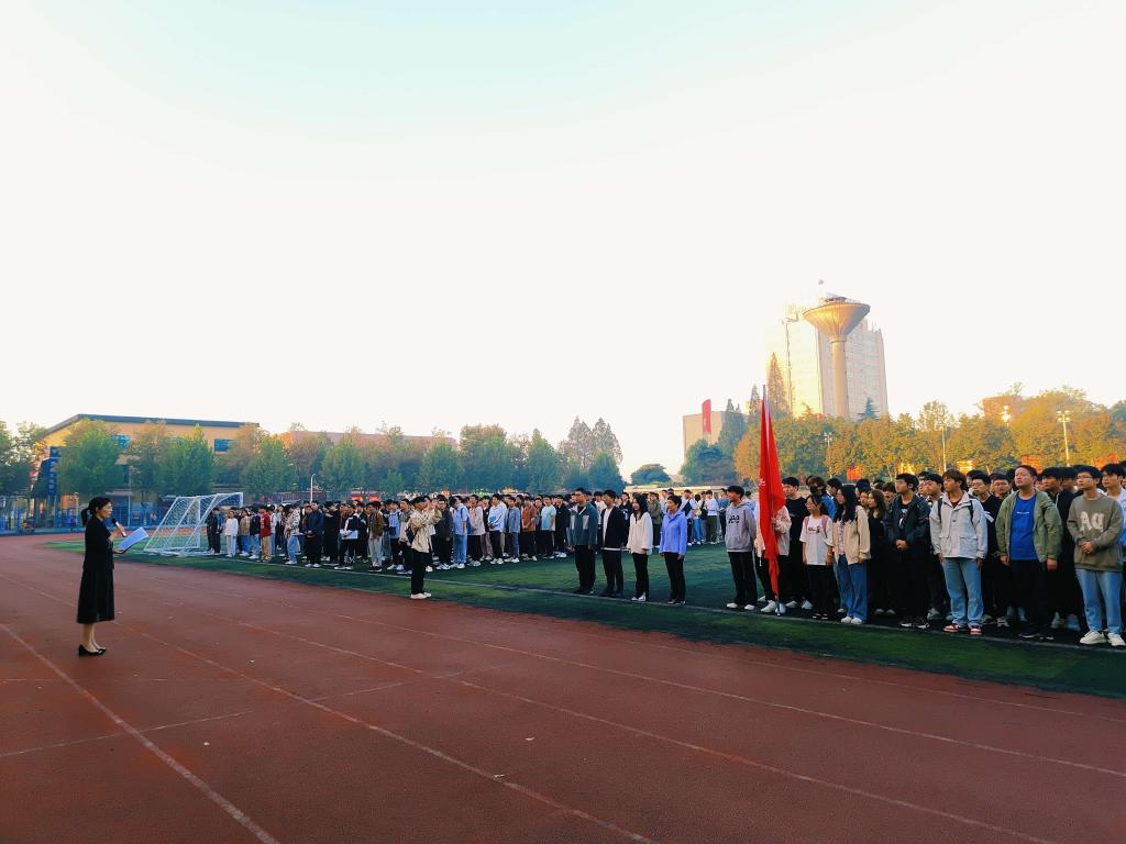 太阳成tyc7111cc集团于10月30日早上7:00在东校区老田径场举行“弘扬体育精神,砥砺奋斗青春”主题升旗仪式。公司党委副书记丁明霞,全体辅导员和2021级、2022级全体在校生参加。仪式由机卓12201班陈俊廷主持。